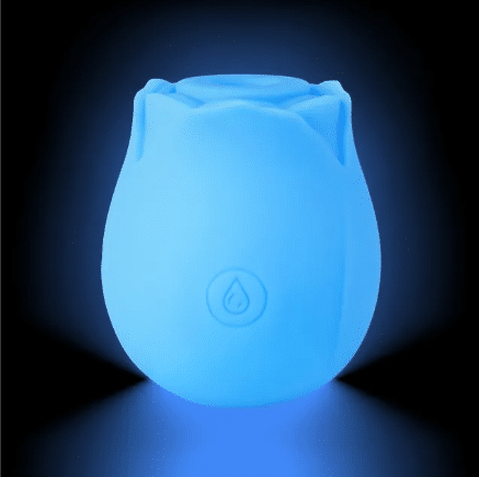 10-Function Blue Glow-in-the-Dark Silicone Rechargeable Clitoral Rose Vibrator