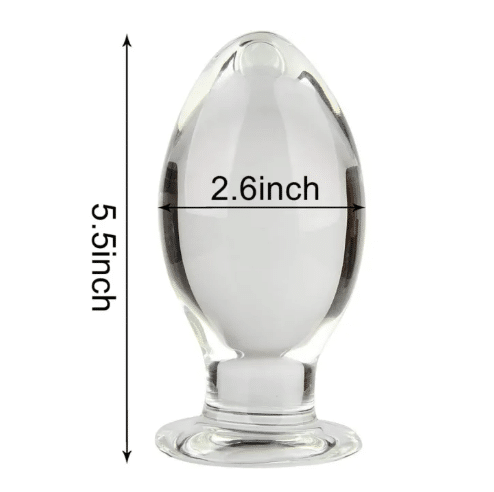 A premium clear glass anal plug with a bold egg-shaped design for advanced users. Crafted from durable, body-safe glass, it offers smooth insertion, weighty fullness, and versatile play options including temperature play. Easy to clean, waterproof.