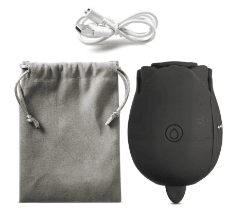 7-Function Black Silicone Rechargeable Clitoral Rose with Vibrating Tongue