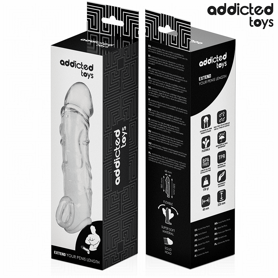 The Addicted Toys Penis Extender is an accessory designed for those looking to temporarily increase the size of their penis in terms of length and girth during sexual intercourse. Made from high quality transparent material, this extender is ideal for providing a comfortable and safe experience, suiting users looking to enhance their performance and satisfaction.