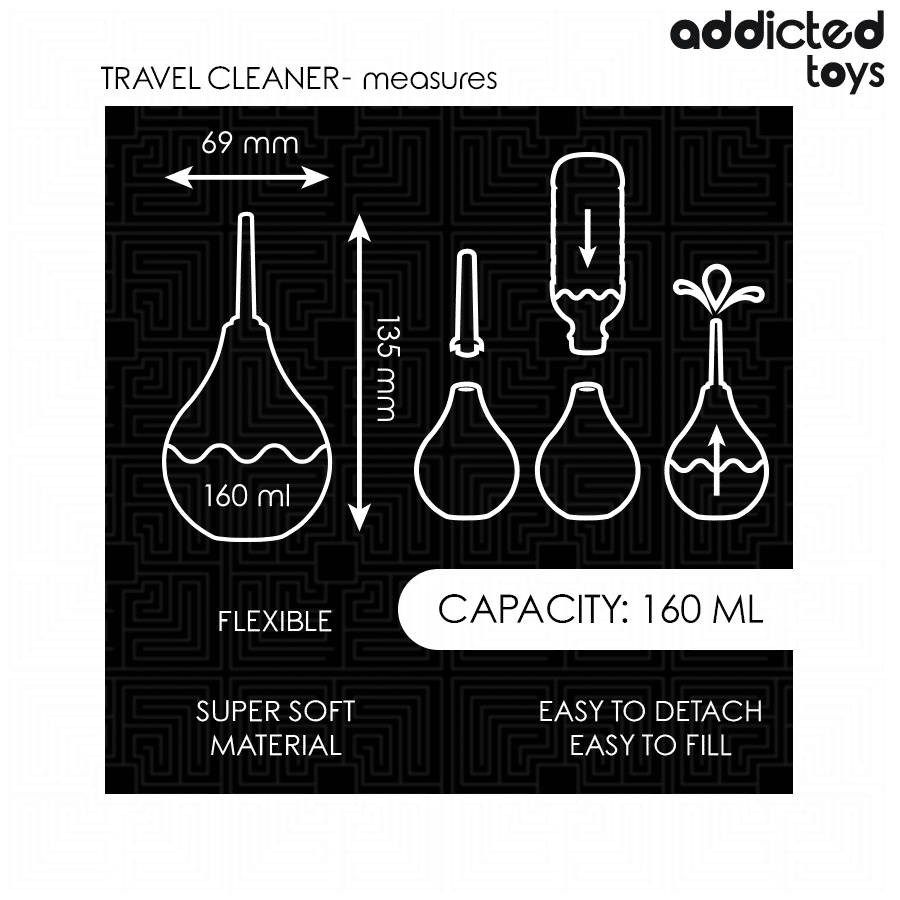 The Addicted Toys Travel Size M Anal Cleanser is an ideal choice for those looking for an effective and practical product to maintain proper hygiene before or after anal stimulation. With a compact size but larger capacity (160 ml), it is perfect for those who want a larger cleanser that is still easy to take on their trip or store discreetly. Its ergonomic design ensures comfort and control during use.