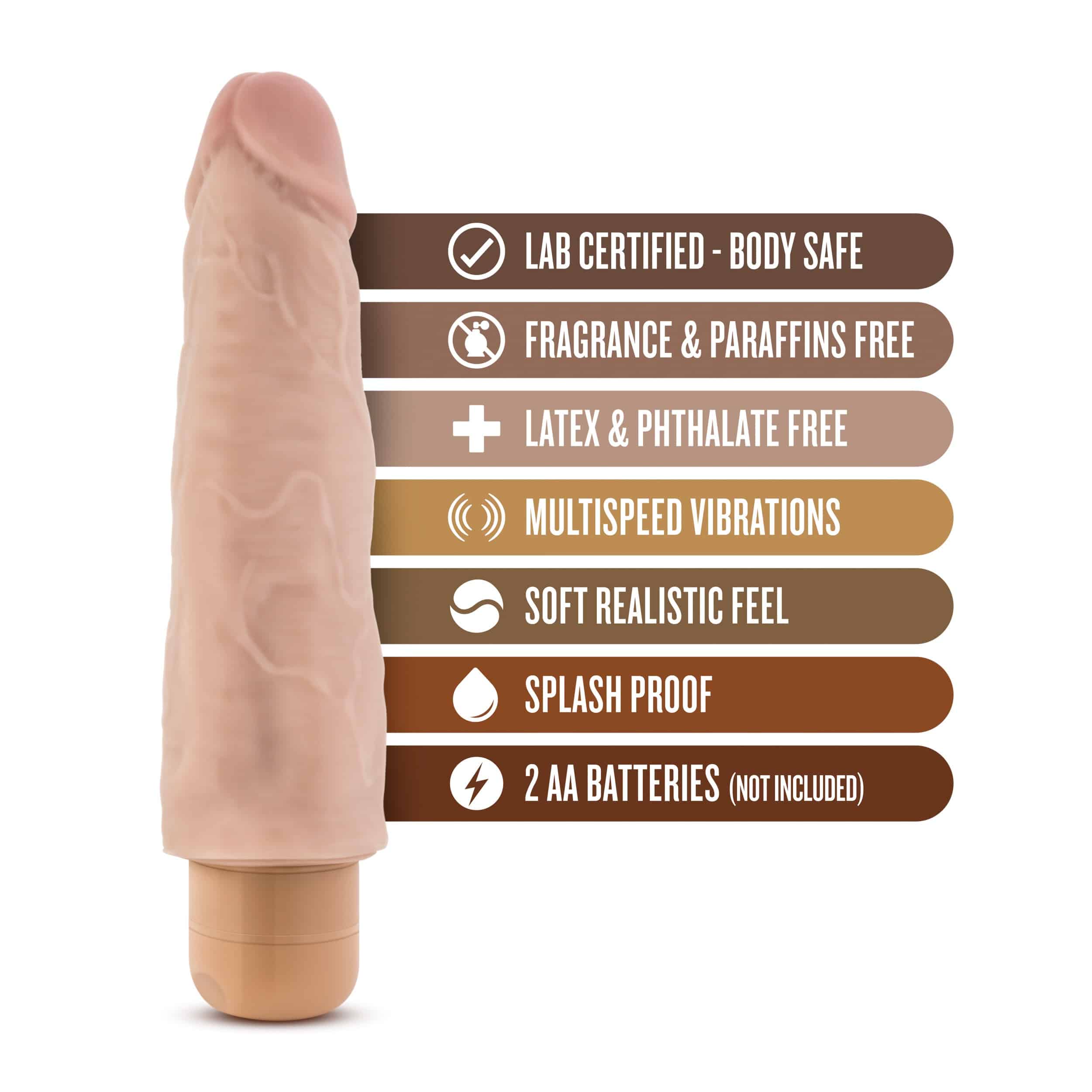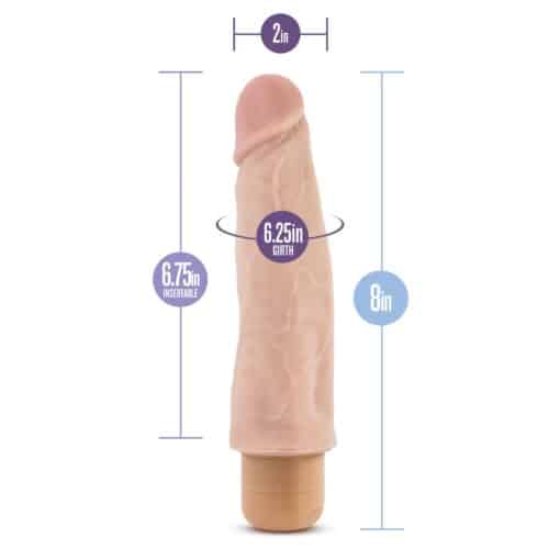 The doctor is in! Blush Novelties Dr. Skin Vibe #14 is a 8 inch realistic vibrator with a veined shaft for a realistic look and feel. The twist dial base is waterproof for shower and bath time. Created for the value conscious user. Vibe #14 is made of body safe, phthalate free PVC.