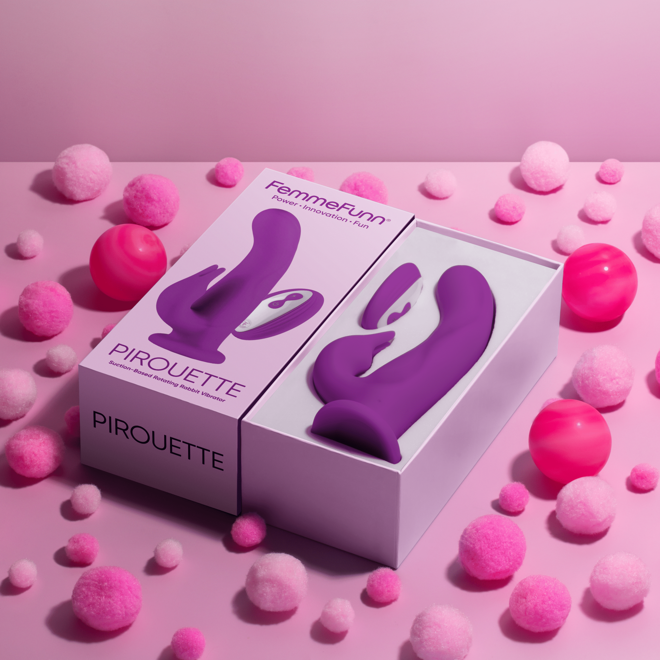 Discover pleasure that will make your head spin. Pirouette packs 8 powerful rabbit vibration modes and 360? rotation technology into an elegant waterproof design made from premium liquid silicone and equipped with a remote.