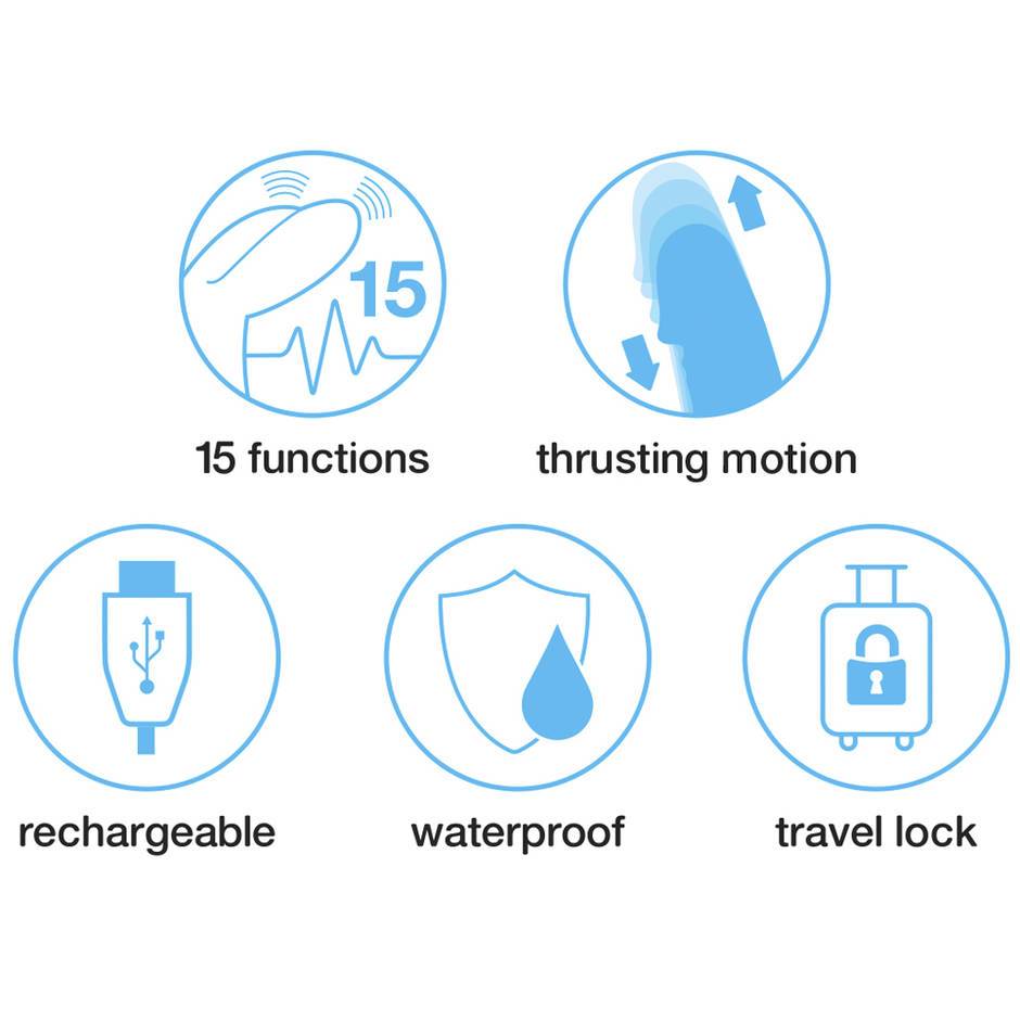 – Inbuilt thrusting technology delivers real-feel stimulation for incredibly lifelike pleasure.