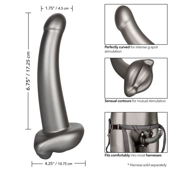 The accentuated probe and rigid shaft are created to perfectly tease intimate curves and indulge internal sweet spots for your lover, while you get lost in the teasing contoured base. This powerful probe is made for mutual stimulation and satisfaction with a perfectly contoured base and the g-spot teasing curved shaft. Made to caress yours and hers most intimate curves for double the orgasmic pleasure.