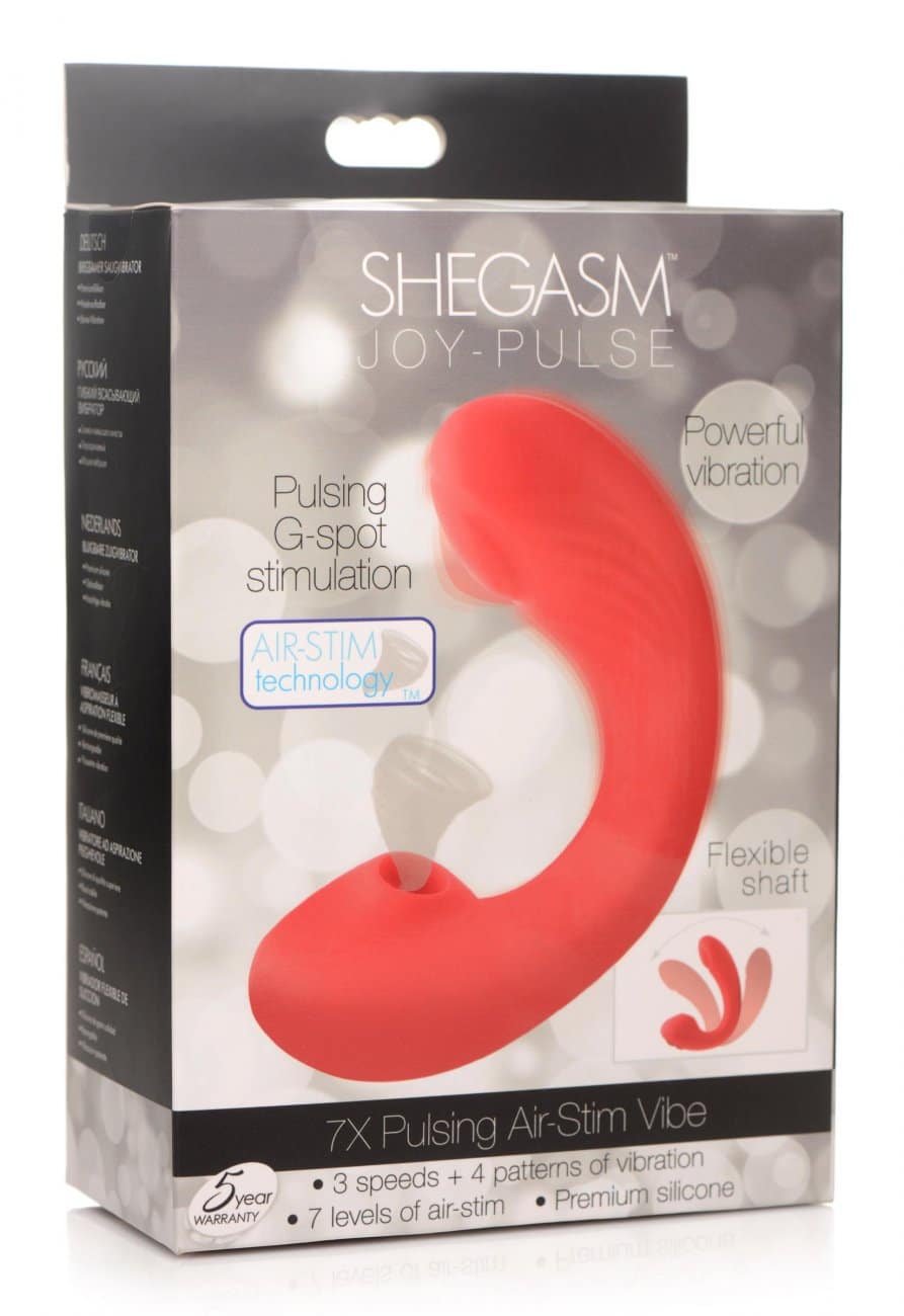 Explore your desires and level up your masturbation game with this pulsing, vibrating air-stim vibe! The flexible shaft allows you to grind against the toy and find the perfect position as you cycle through 7 different pulsing and vibration modes that get right to your G-spot inside and 7 air-stim sucking modes that stimulate the clitoris.