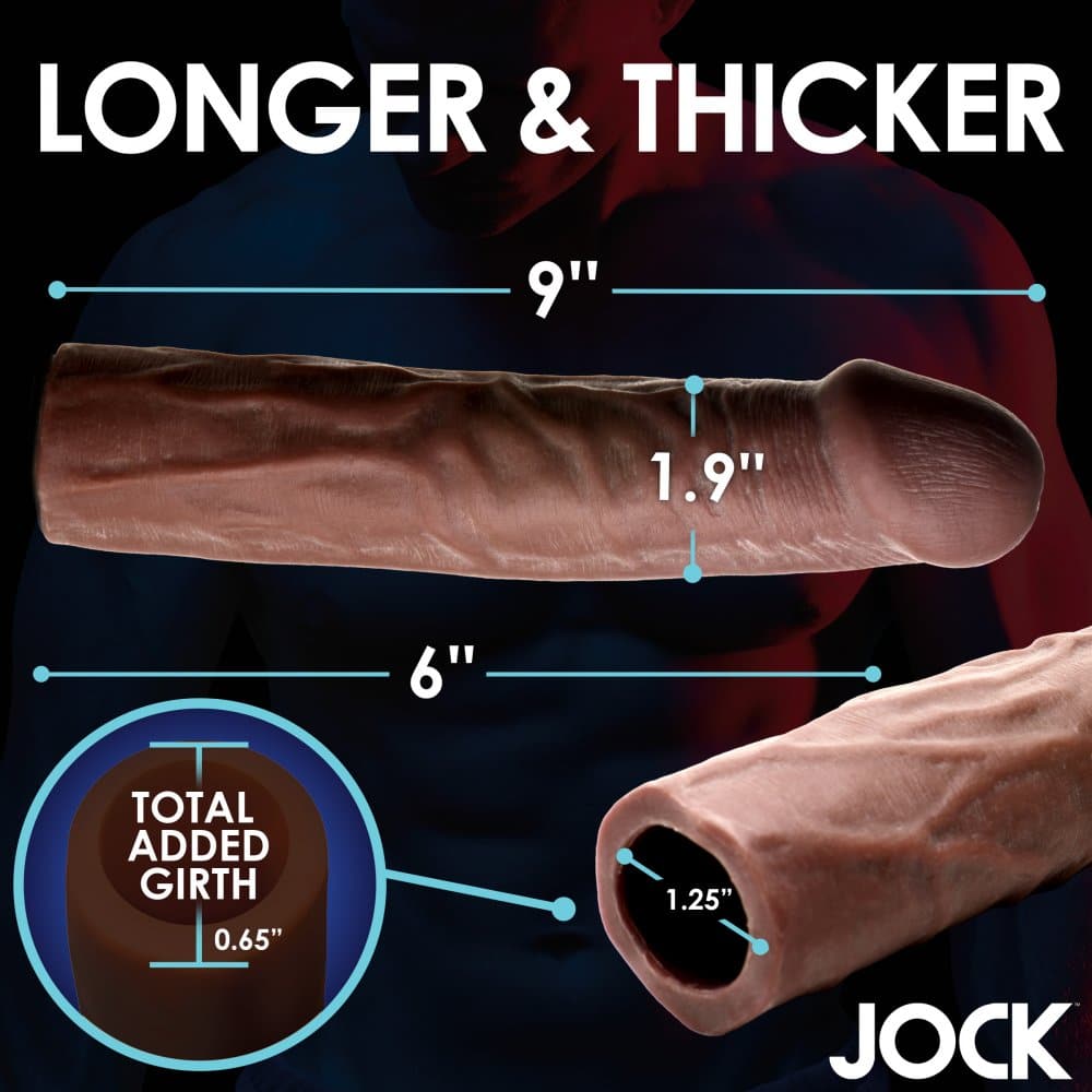 Wouldn’t you love to add a little length without going to extremes? With this extra long penis extension sleeve you can add inches in seconds! The body-safe, phthalate-free and latex-free TPE is super stretchy and slips right onto your shaft so you can upgrade your dong for yourself and your partner to enjoy! With a smooth head and thick, popping veins along the shaft, the realistic look and feel of this dong is designed to make the fantasy come to life! For a perfect fit, you can simply trim the base until you get the perfect length desired. Wash with warm water and mild soap after each use.