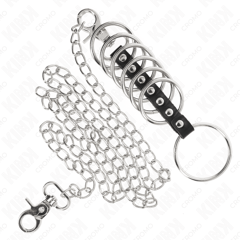 Kink – 7 Metal Penis Rings 3.8 CM TO 5 CM Connected with Leather and Metal Chain 100 CM – Nr 26