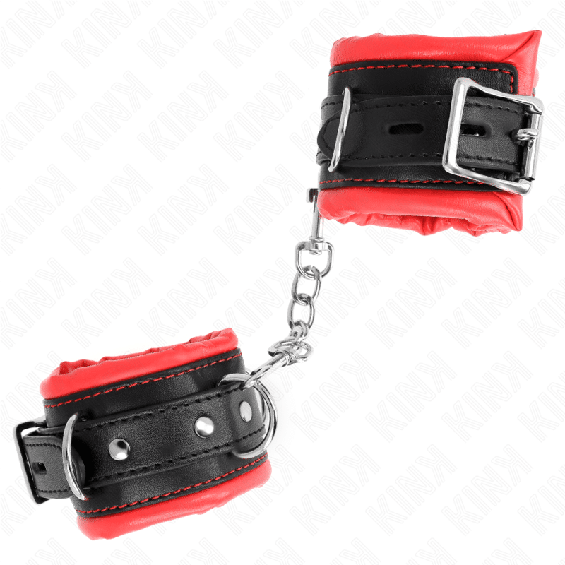 Kink – Deluxe Lockable Padded Wrist Cuffs Red/Black Adjustable 20-30cm X 6cm