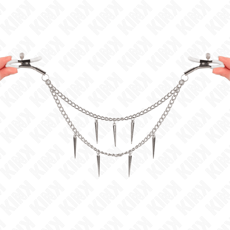 Kink – White Nipple Clamps with Spikes Chains 30cm – Nr 14