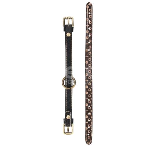 The striking design features dual adjustable straps: a deep espresso-brown band contrasts dramatically with an embossed black counterpart. They converge at a substantial 1.03-inch diameter metal ring — the industrial heart of this restraint.