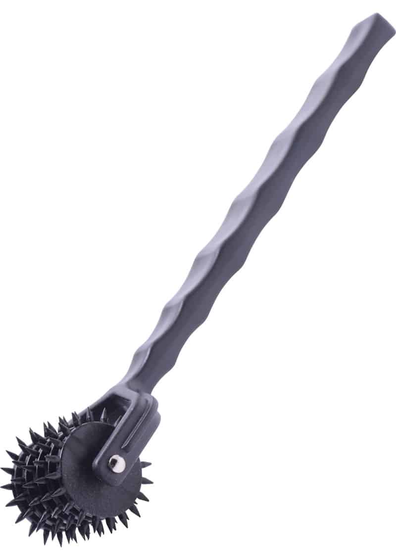 This modern wheel takes a row of 5 spikey pinwheels for your pin-pricking pleasure. The ergonomically-shaped handle allows for good grip in those hot and heavy moments when you want to deliver a subtle but sharp sensation. Ideal for sensation play, this device pairs well with a blindfold to keep your partner guessing where they will feel that delightful sting next.
