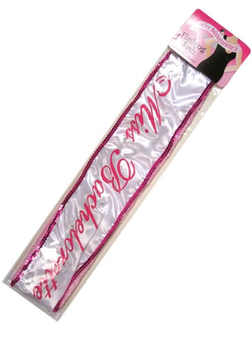 A sparkling addition to your Bachelorette wardrobe that is sure to light up your night of fun. You?re sure to be the center of attention with this 5ft long flashing sash. Complete with battery and on/off button just in case you find yourself overwhelmed and need to take the attention off you. Sash is adjustable to fit most Bachelorettes. No one will soon forget the sparkling lady of the evening!