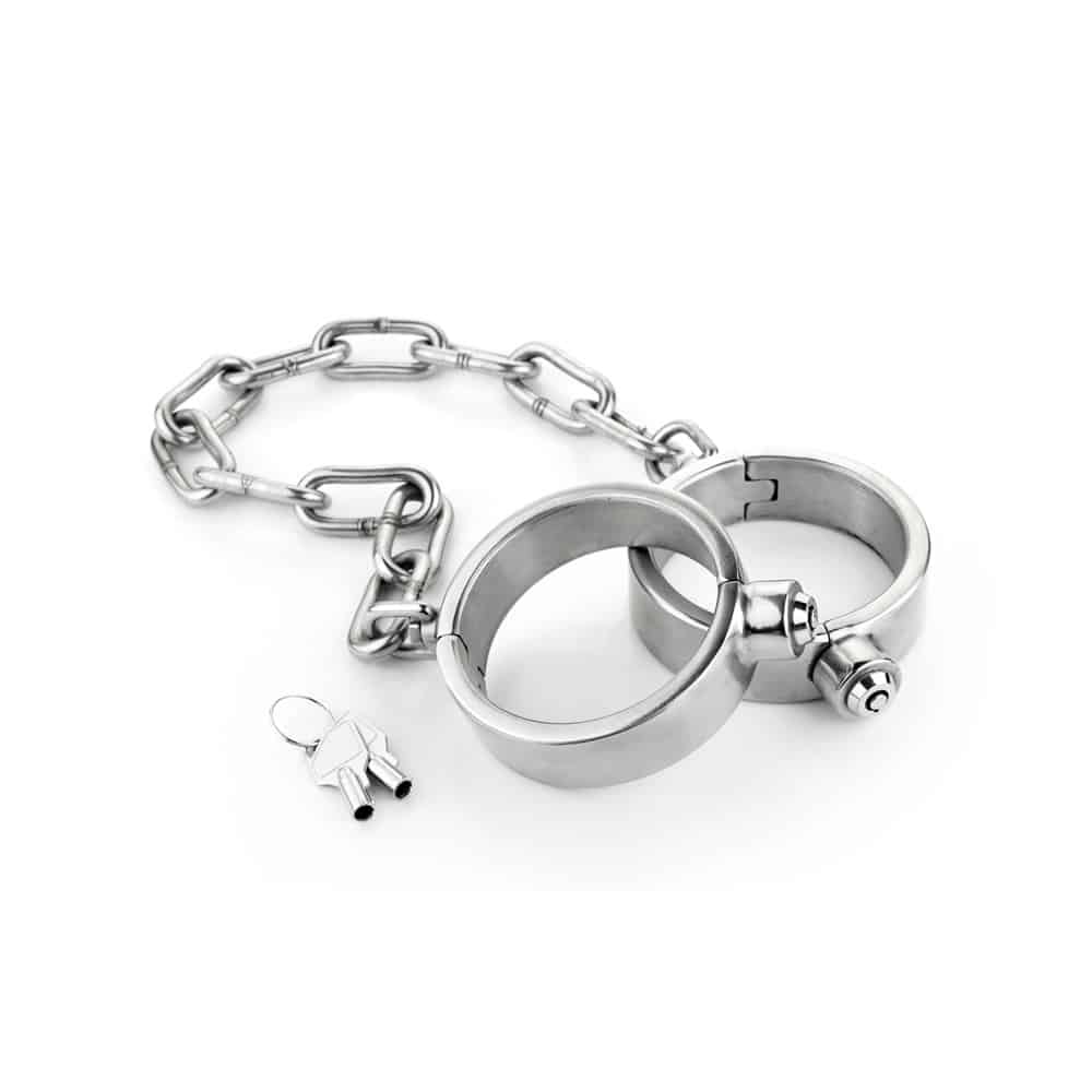 / Mister b – Stainless Steel Press Lock Wrist Cuffs ( Male )