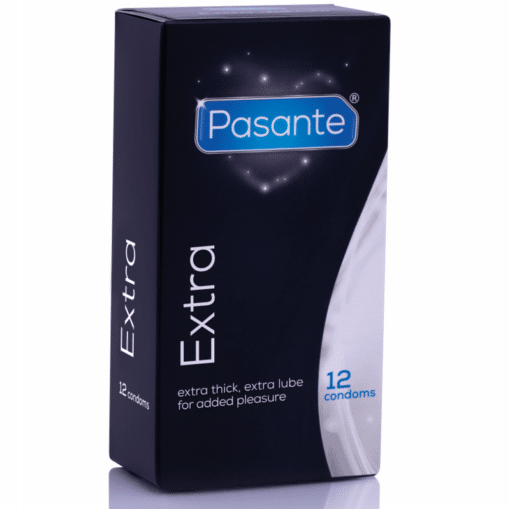 Pasante Extra condoms are extra thick with added lubricant. Smooth, parallel and natural color.