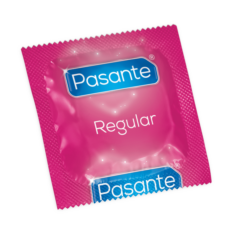 Pasante Regular condoms have a slight tapered shape for a natural feel. Soft, natural-colored and with a teat tip.
