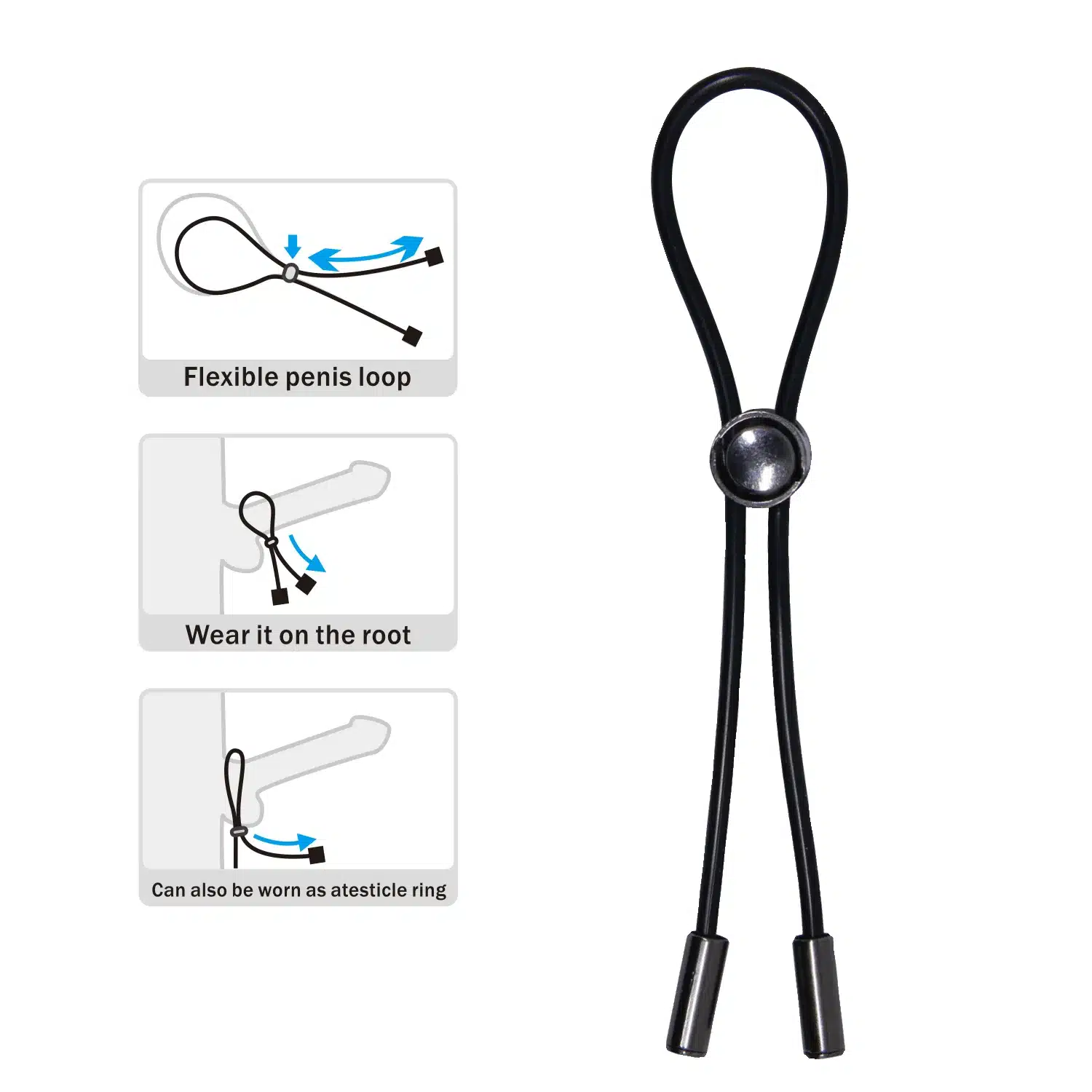 The penis loop is attached. It is controlled by a synthetic bead so that it can be placed over the penis and testicles. You can individually adjust the diameter to the size of the penis. In this way, the intensity of the blood flow restriction effect can be adjusted according to personal wishes.