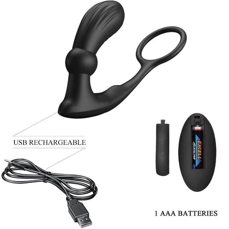 The socket can be easily controlled by remote control. The combined rings hold the penis and testicles securely and can support the erection effectively due to the blood congestion effect. The inserted anal plug with its special curved design and 12 different shock and vibration modes that will provide intense backdoor stimulation.