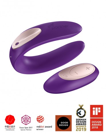 The Partner Plus provides more intense stimulation during amorous play to both him and her. The Partner toy is U-shaped, so one shaft lies on your clitoris, while you insert the other one during play. As both shafts are fitted with a powerful motor, it is not only your love button that benefits from the intense vibrations ? your partner?s manhood and G spot are stimulated at the same time. At the touch of a button, you can choose from three vibration intensities and seven vibration rhythms to bring you to climax together.