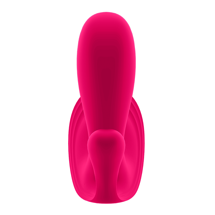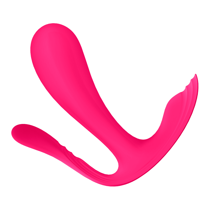 Top Secret stimulates the G-spot with its curved, voluminous shaft and intense vibrations. The wearable vibrator features a flat, ergonomic base which ensures maximum comfort. The shaft has a maximum diameter of 3 cm. Top Secret+ has a bonus shaft for anal stimulation with a diameter of 1.7 cm. The deep, powerful vibrations of the voluminous shaft can be controlled via the control panel on the vibrator or via the Satisfyer app. Top Secret has a quiet motor, is designed to fit discreetly in the vagina and can be controlled by someone else: this makes the vibrator perfect for those wanting to take playtime to a next (more public) level.