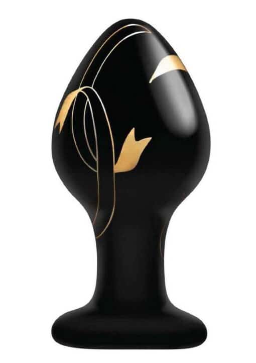 Secret Kisses Handblown Wide Glass Plug 4.5in – Black/Gold
