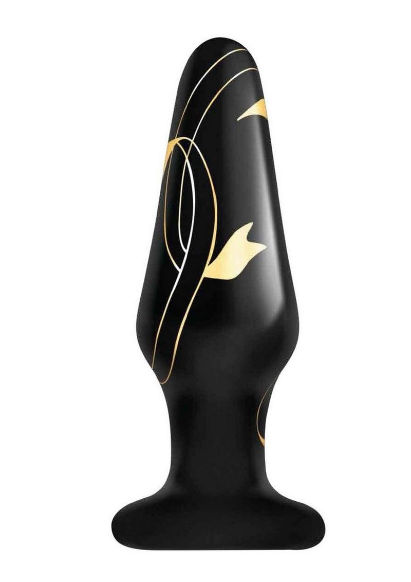 Secret Kisses Handblown Glass Plug 4in – Black/Gold