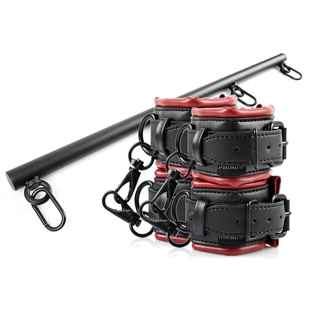 Sportsheets Saffron Spreader Bar & Cuff Set – Black/Red