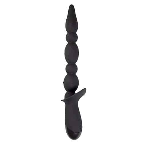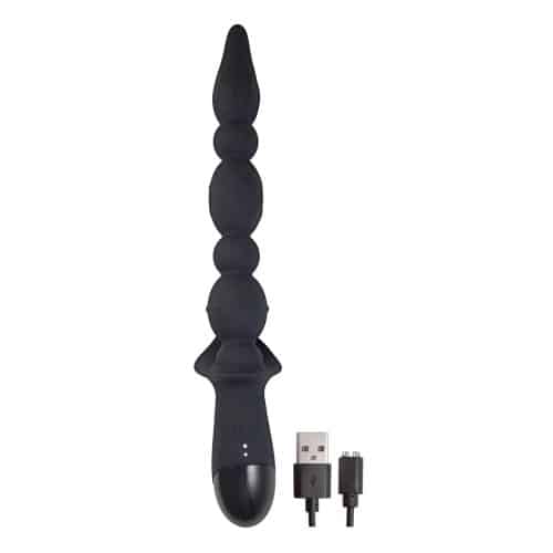 Want to take kick your backdoor stimulation up a notch? The Nasstoys Vibrating Anal Wand is a tapered, beaded probe that flexes and bends for multi-directional positioning. This ultra-flexible and powerful toy is versatile for P-Spot or G-Spot stimulation, and flexible enough to follow the contours of your body. 5 textured beads that graduate in size as they are inserted provide the user with different sensations. The tip can be angled to hit your favorite erogenous zones. The comfortable anchor base will fit snugly and securely between the butt cheeks and includes a handle making it easy to explore the wand’s texture. Perfect for exploring solo, or adding new sensations with a partner. Charge fully before first use to prime the battery of your new toy. Use this toy your favorite water-based lube for the most pleasurable experience. After use just carefully wash the toy with mild soap and water or try some Toy Cleaner for even quicker cleanup.