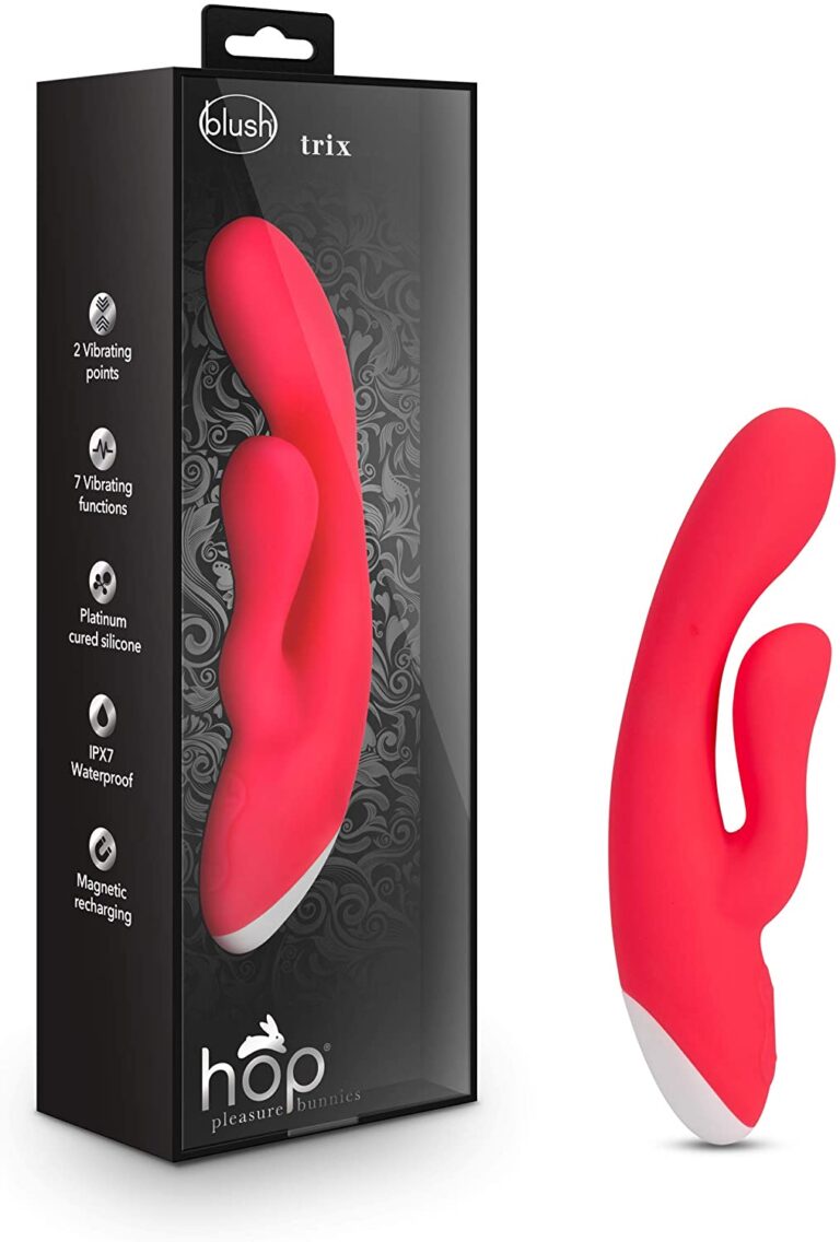 Hop Trix Rechargeable Silicone Rabbit Vibrator- Cerise