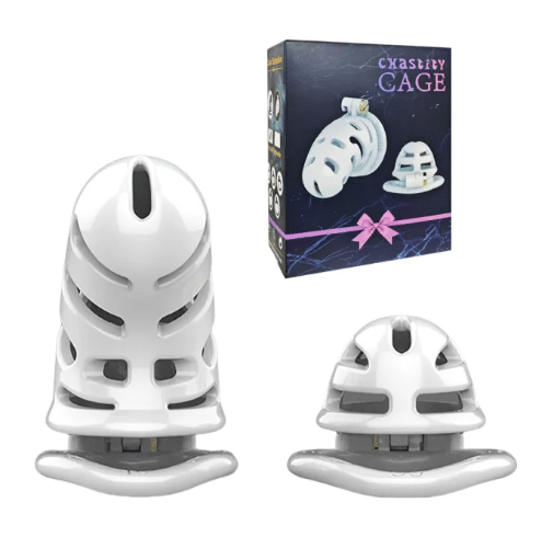 Master Series 33 White ABS Male Chastity Cage Set – Includes 2 Cages, 5 Rings, and Locks